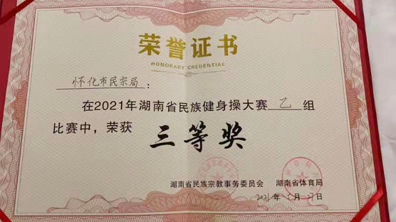 5月27日,我院8名师生代表怀化市参加2021年全省民族健身操大赛,荣获乙组三等奖。