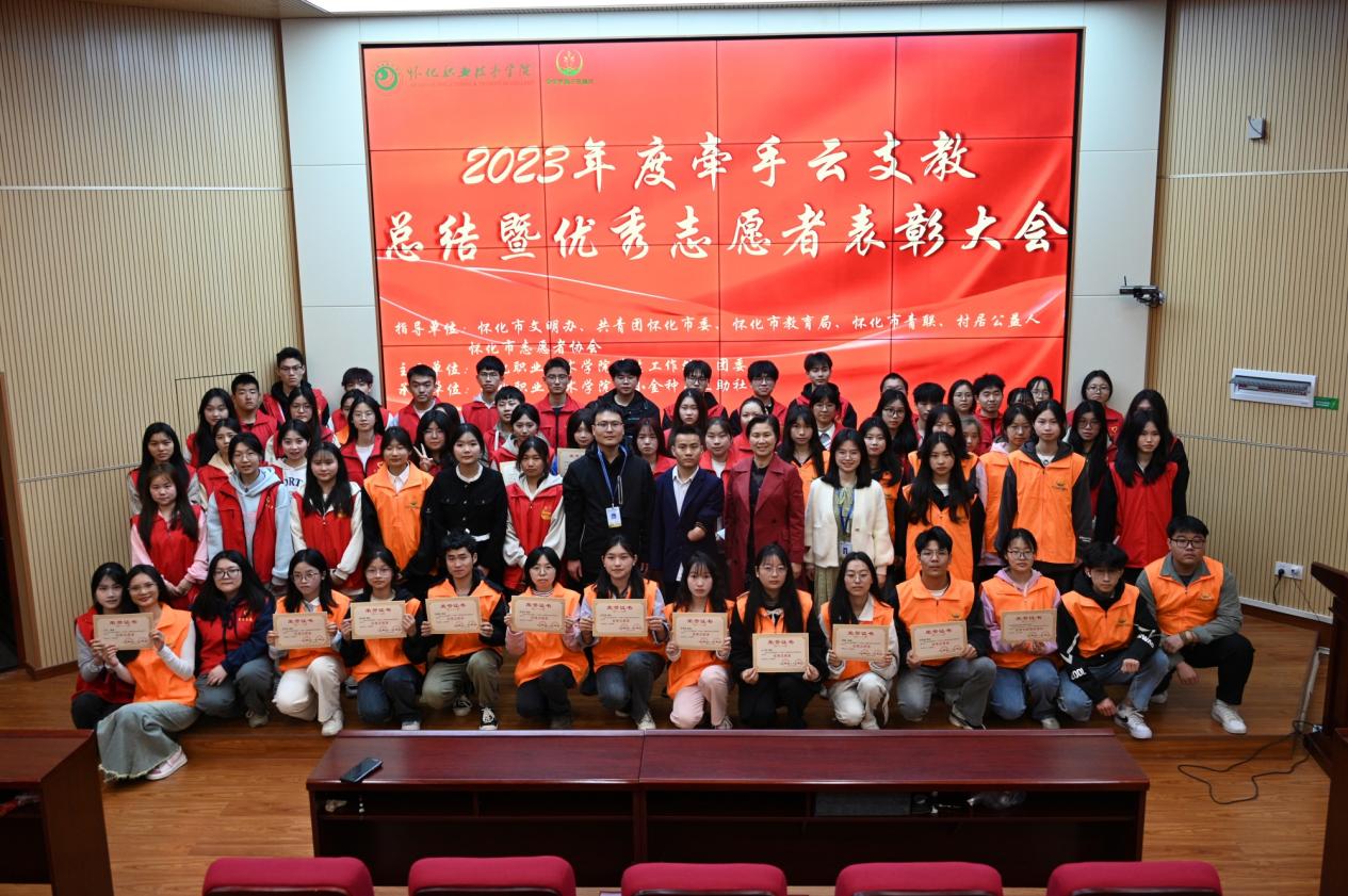 近日,由学校小小金种子互助社组织的怀化市2023年度牵手“云支教”志愿服务活动总结暨优秀志愿者表彰大会在学校图书馆学术报告厅举行。