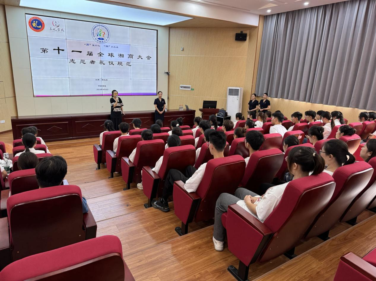 9月2日至3日,团市委开展第十一届全球湘商大会高校青年学生志愿者选拔,我校65名优秀青年学生志愿者脱颖而出,参加团市委组织的基础礼仪理论、仪姿仪态规范、文明用语规范、应急事件处理等专业培训,进一步提升专业素质和服务能力。