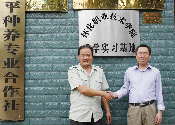 6月7日位于泸阳的怀化和平种养专业合作社正式挂牌成为我院教学实习基地,图为合作社负责人与我院环生系主任贺再新