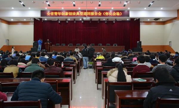 郭峰是第十二届全国青联委员,搜空集团董事长兼总裁,东莞汛联集团总裁,益阳市电子商务协会会长,国内“互联网+”领军人物。他在报告会上分享了自己大学期间在杭州接触互联网以后开始的创业经历,他鼓励青年学子一定要开拓思维,勇于创新创业,在网络信息时代打造一片自己的天地。袁虎是湖南龙虎生态农业科技有限公司董事长,湖南省农村青年致富带头人协会副会长。从一个高中毕业的毛头打工仔到“全国劳动模范”“全国种粮售粮大户”“中国青年五四奖章获得者”。袁虎告诉青年学子,在创业的路上要敢想、敢拼、要勇于拼搏,敢于创新。周求华是全洲药业集团有限公司董事长兼总裁、中国“优秀企业家”、湖南省“百位诚信人物”。他给青年学子介绍了创业项目“创客平台”。