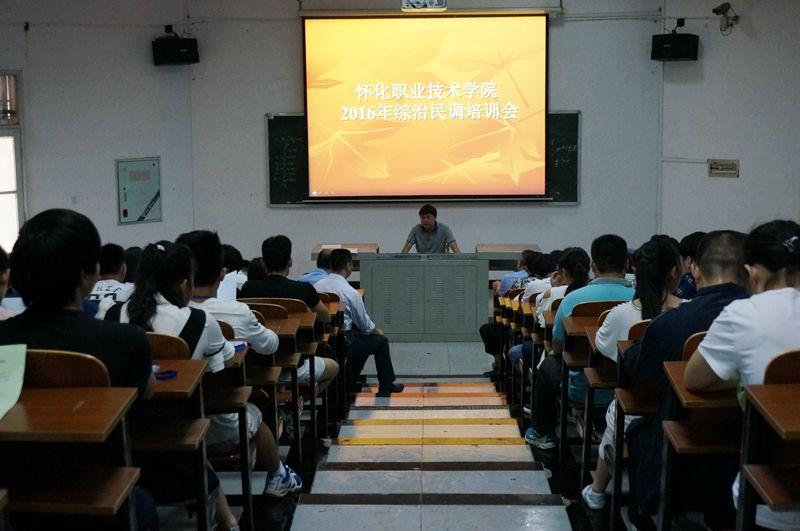2016年怀化市综治民调工作已经正式开始,为确保我院师生反馈数据的真实准确性,5月5日、6日上午,我院与鹤城区河西街道办事处联合召开了2016年综合治理民调工作培训会,分别针对教职工和学生传达了综治民调工作的内容、目的和意义,希望我院全体师生能够积极支持配合此次的综治民调工作。