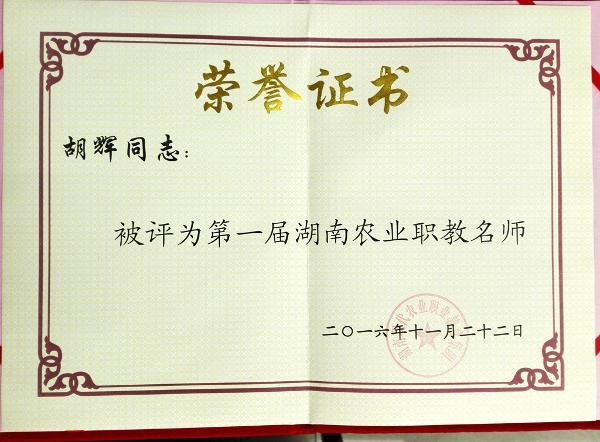 同时,胡辉教授还荣获湖南省第四届黄炎培职业教育奖杰出教师奖。本届黄炎培职业教育奖11月17日在湖南大众传媒职业技术学院举行,共表彰 “黄炎培优秀学校奖”10所、“黄炎培杰出校长奖”8名、“黄炎培杰出教师奖”30名、“黄炎培优秀理论研究奖”14名。