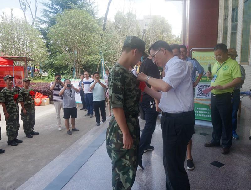 胡佳武书记为新兵佩戴大红花