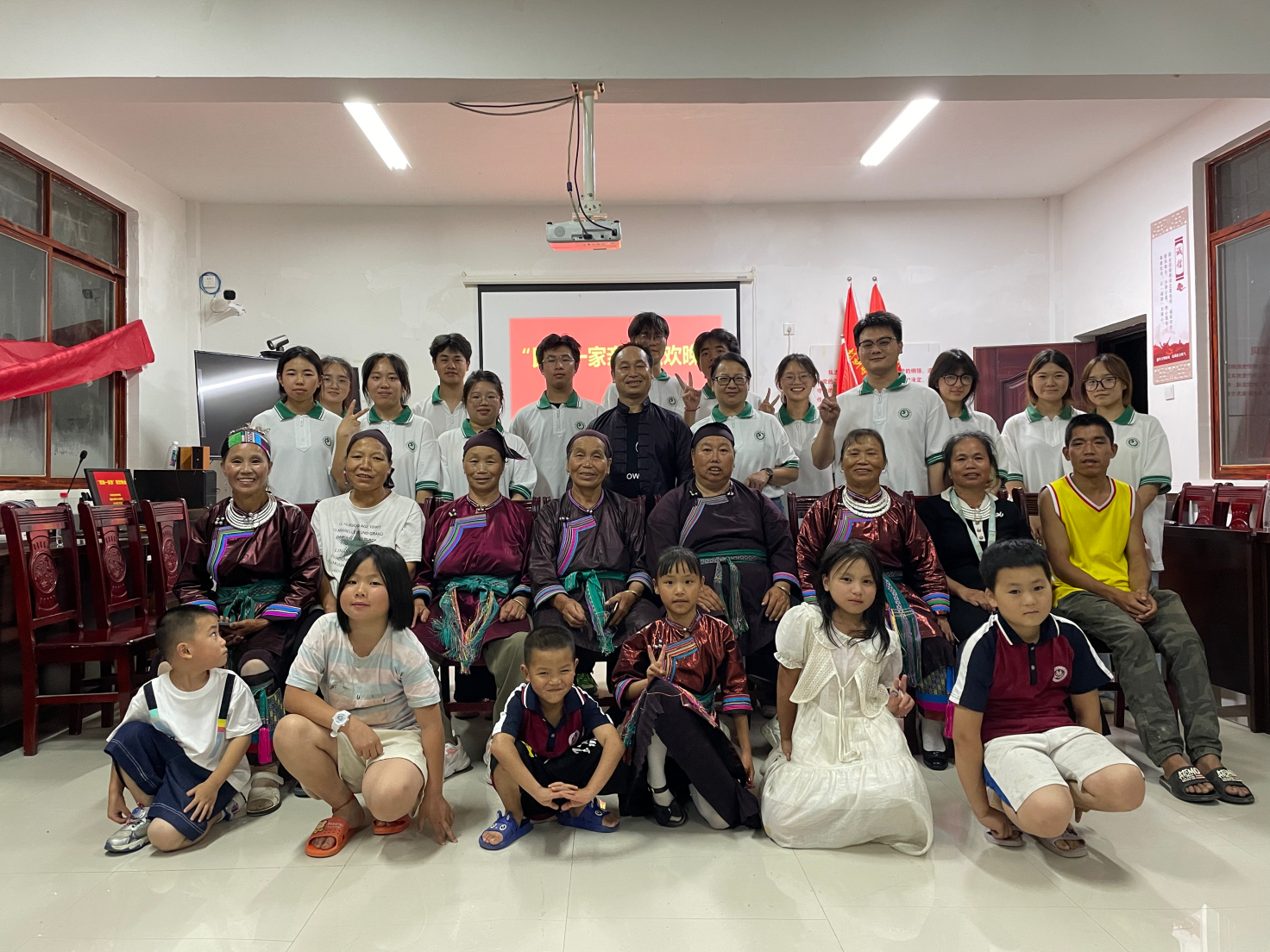 7月3日晚,在大高坪村村部的会议室内,还开展了中华民族一家亲联欢文艺晚会,村民们的民族舞蹈和实践团成员带来的节目轮番上阵,现场热闹非凡。实践团队通过举办此次活动,以推广普通话为增进各民族交往交流交融的载体,以实际行动唱响民族团结一家亲,展示大高坪乡多民族团结奋进、拼搏向上的时代风貌。