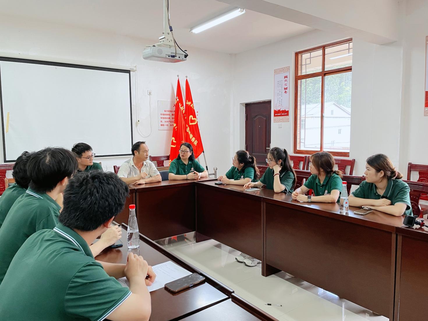 7月1日下午,实践团在大高坪村党群服务中心召开“推普助力乡村振兴”暨“三下乡”活动座谈会,参会的大高坪村吴家态副书记,是我校2016级村干班学员,对实践团队的到来表示热烈欢迎,并介绍当地“土特产”产业相关情况及乡村振兴所面临的困境,并从普通话推广、基层青年干部的培养与成长路径、本地民俗文化及历史渊源等方面耐心解答实践团成员的提问,同时希望能与怀化职业技术学院建立长期友好的合作关系,为大高坪村乡村振兴提供人才支持。